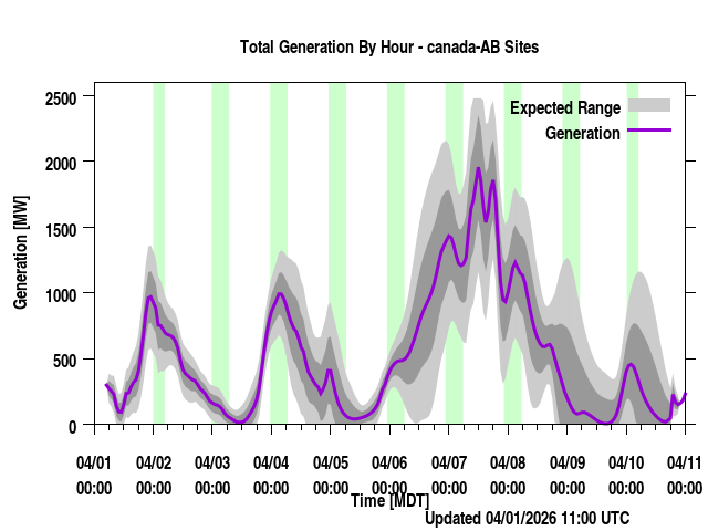 Where REGION is a province or power region, are files used for plotting the graphs on the website. They contain the forecast wind generation, the forecast from various models (except for some short range high resolution models), along with the model average, and plus and minus one and two standard deviations (of the model average).